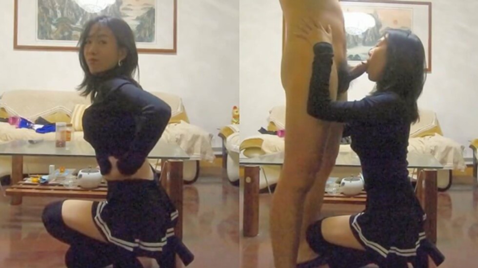 公司部门主管把刚毕业身材性感美腿大学生泡到手约家里换上制服啪啪站位后入给干疼了